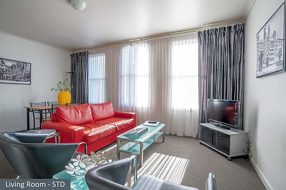 This air-conditioned apartment features full kitchen and laundry facilities, and a spacious living room with a flat-screen TV.
